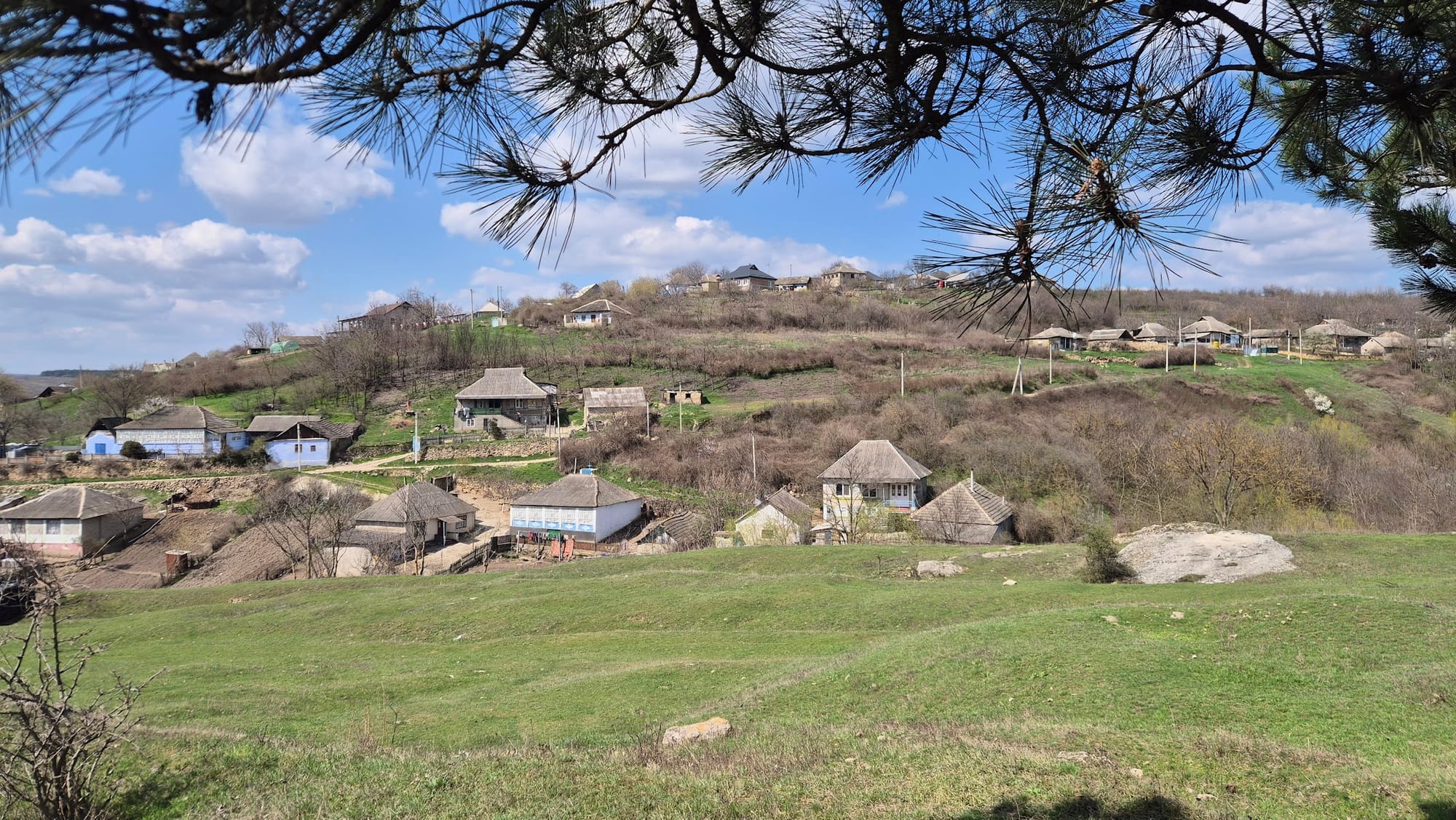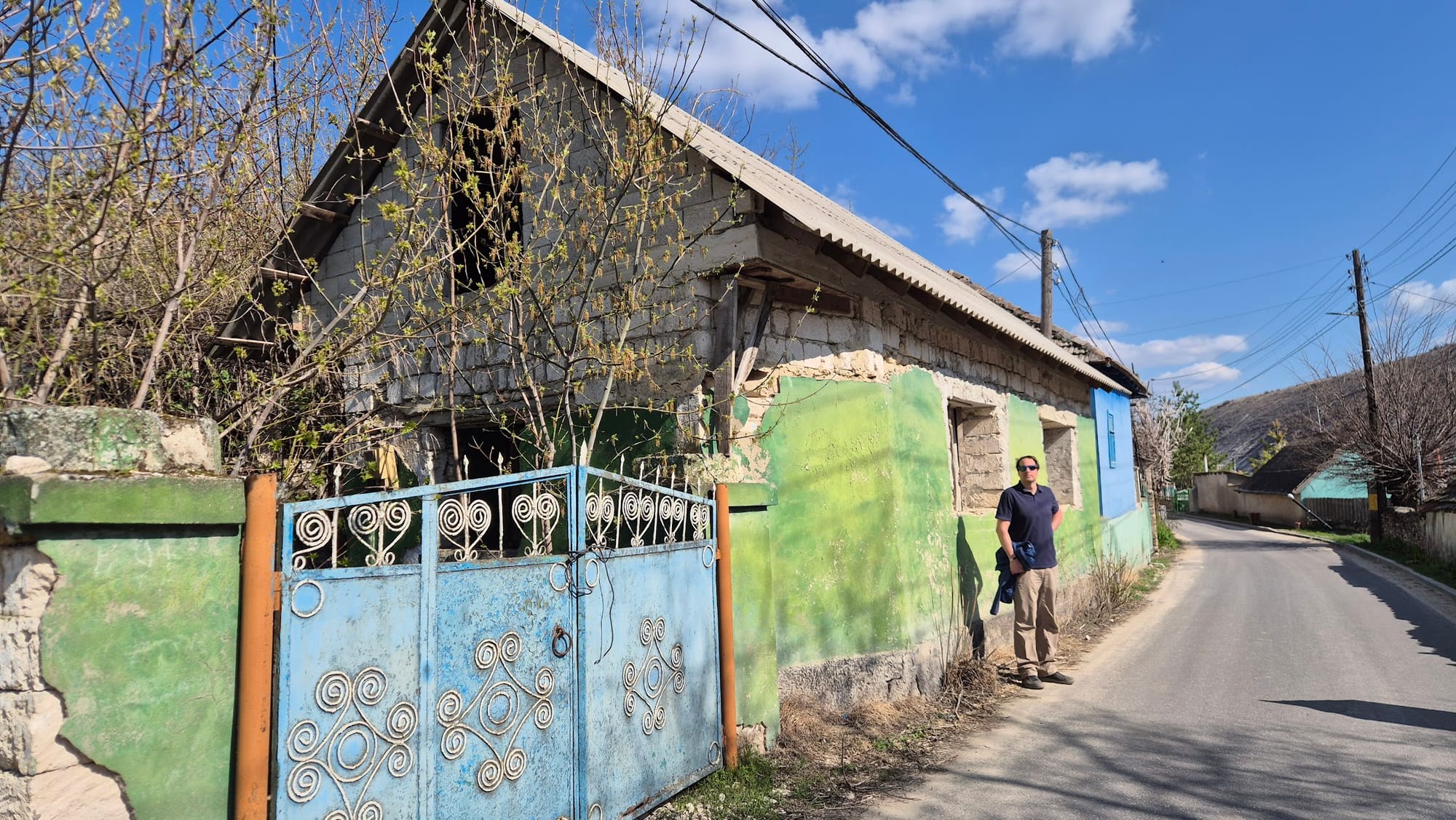 Richtung Orheiul Vechi genießen wir das ländliche Moldau, mit netten Siedlungen, oft grün und blau gestrichenen Gartentoren und Häusern, privaten Brunnen, vielen Kirchen und Straßenkreuzen, vereinzelt Ziegen und Pferden.