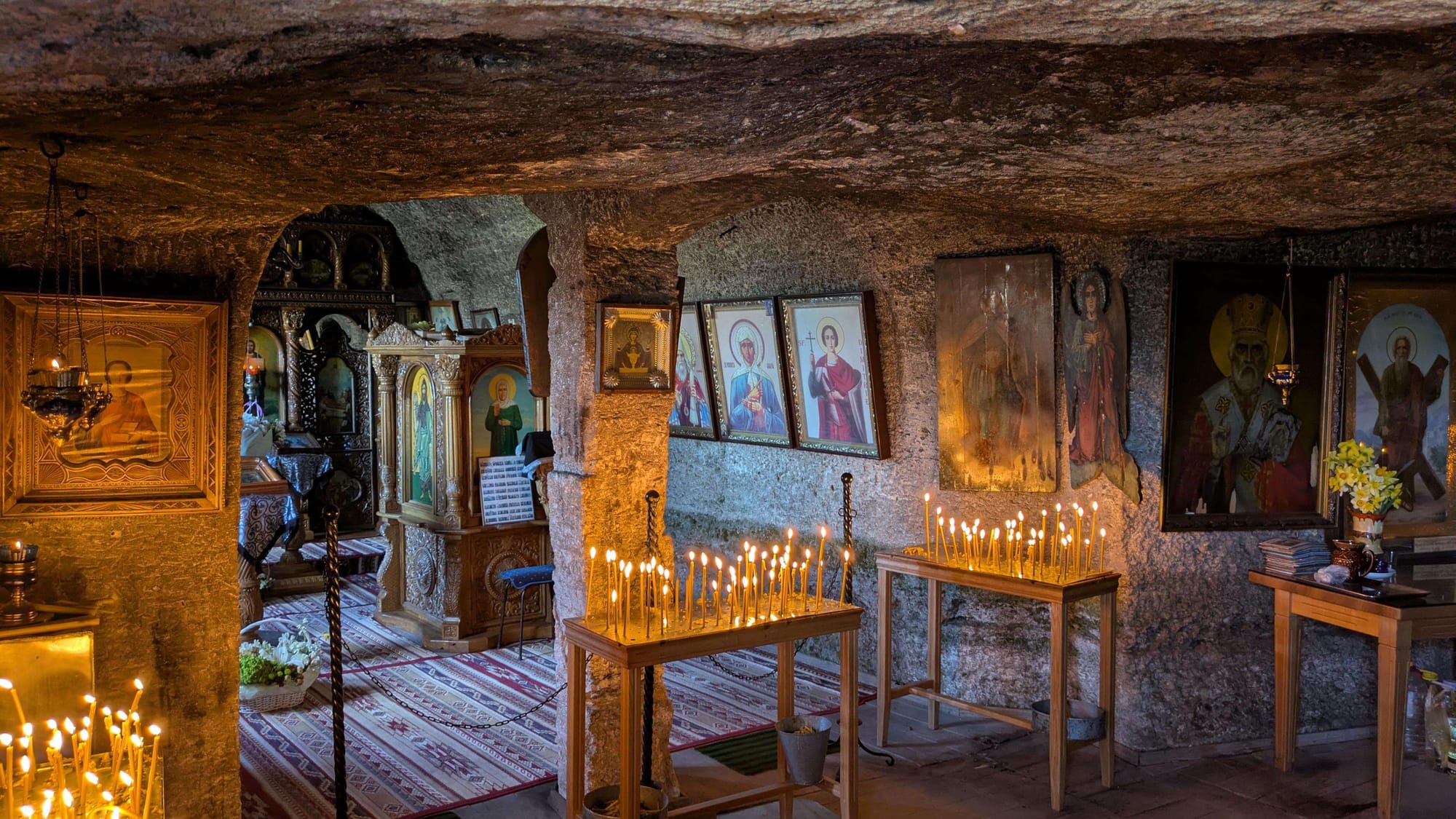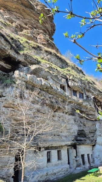 In Orheiul Vechi checken wir in der Villa Etnica ein. Wir laufen von der Unterkunft zur Marienkirche von 1905, steigen hinunter in das orthodoxe Höhlenkloster aus dem 17. Jahrhundert, das in eine Kalksteinfelswand oberhalb des Flusses Răut gehauen wurde.