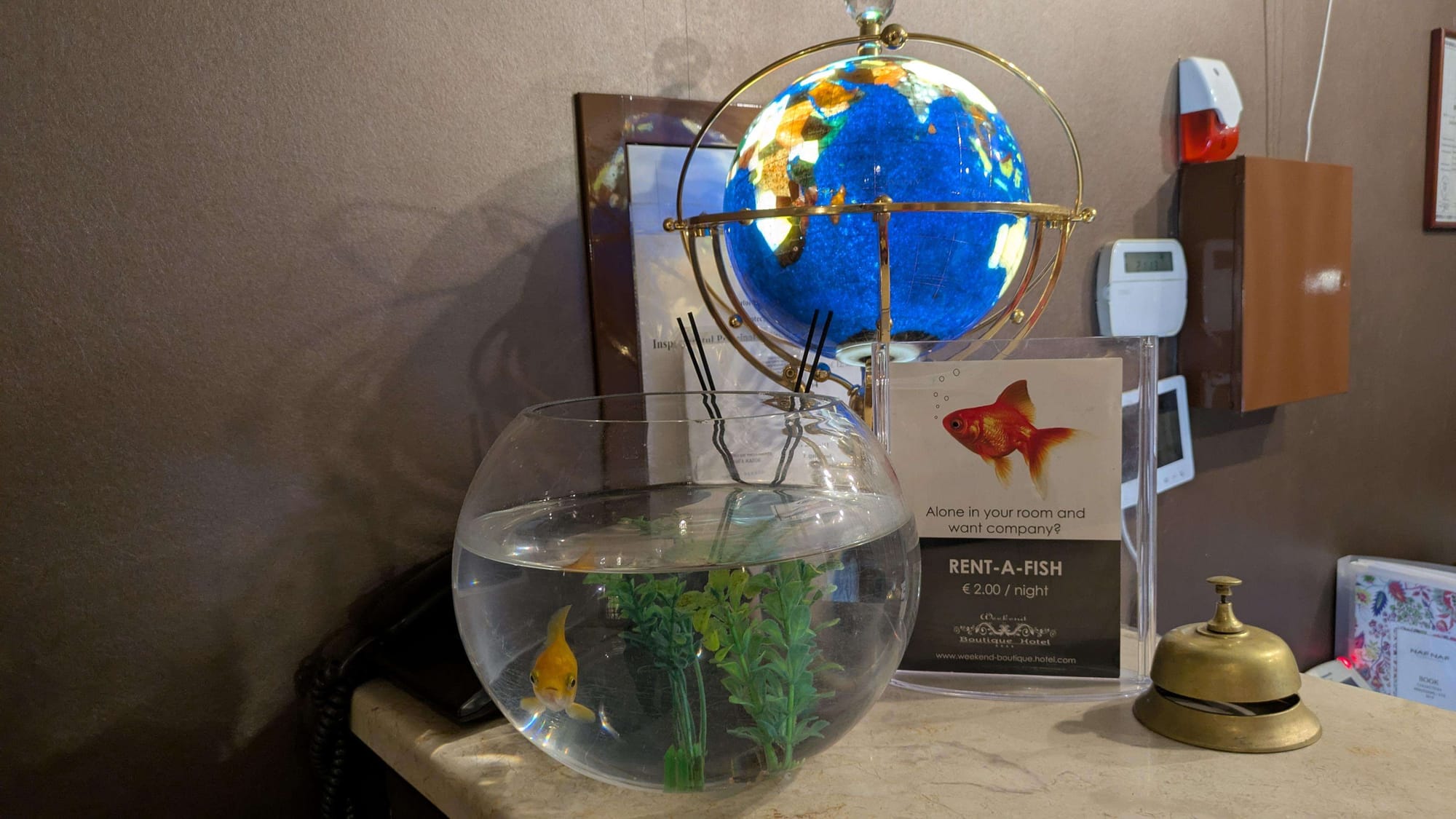 Wieder zurück in der Hauptstadt empfängt uns ein kleiner Miet-Goldfisch an der Rezeption des Weekend Boutique Hotels.